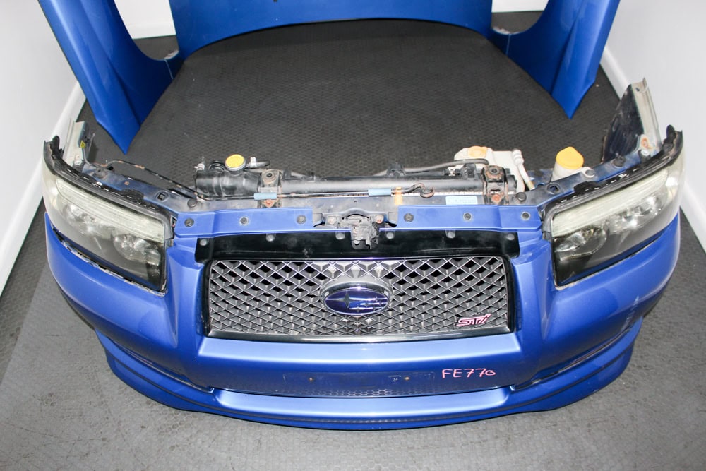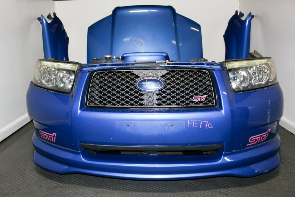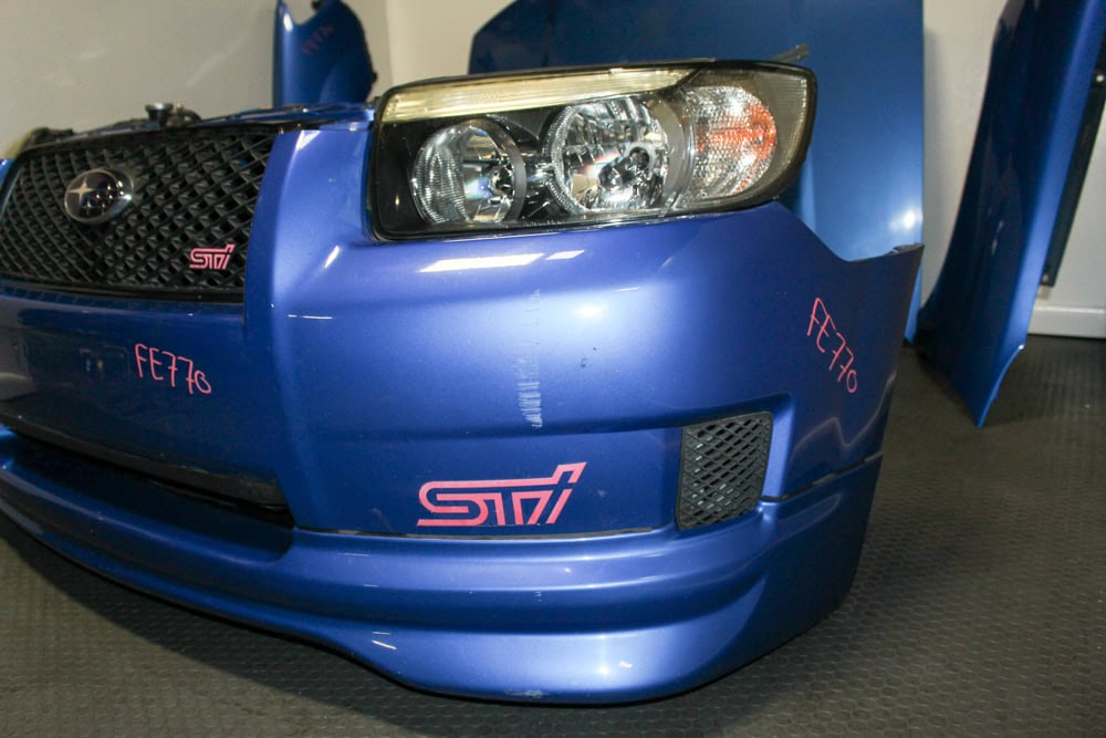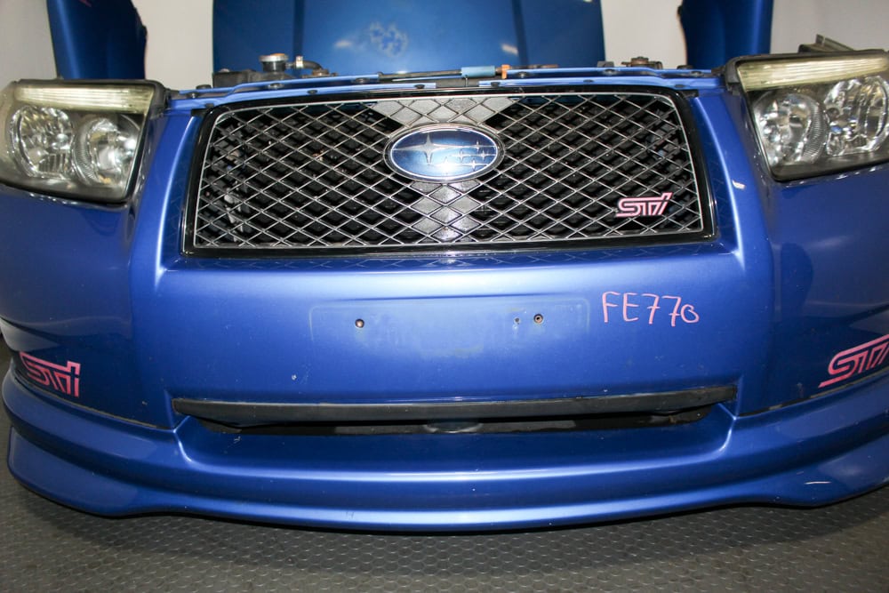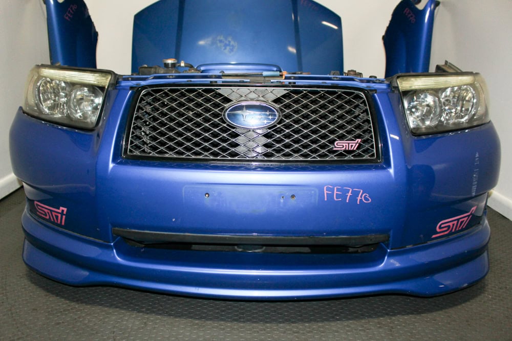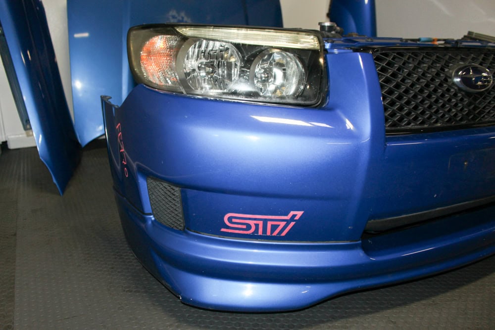 Upgrade your build with an authentic JDM 2003–2008 Subaru Forester STI (SG5 / SG9) Front End Assembly finished in Rally Blue (World Rally Blue) and equipped with factory HID headlights and STi front lip. Perfect for SG chassis restorations, STI conversions, or aggressive JDM styling upgrades.
