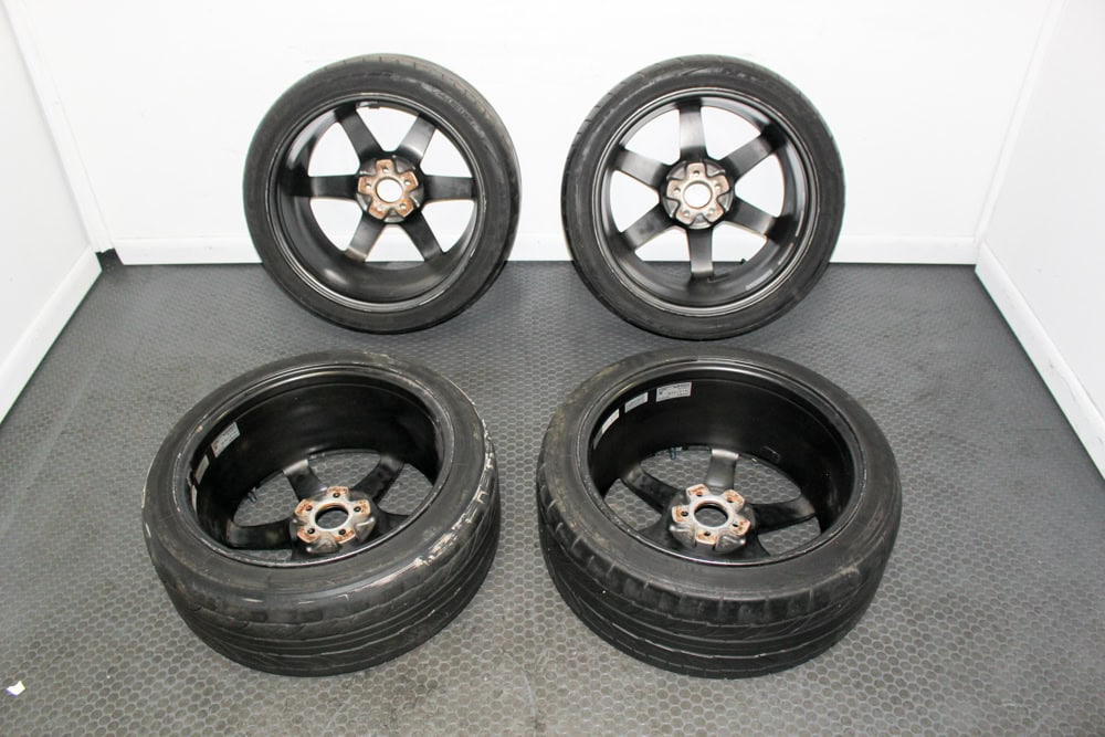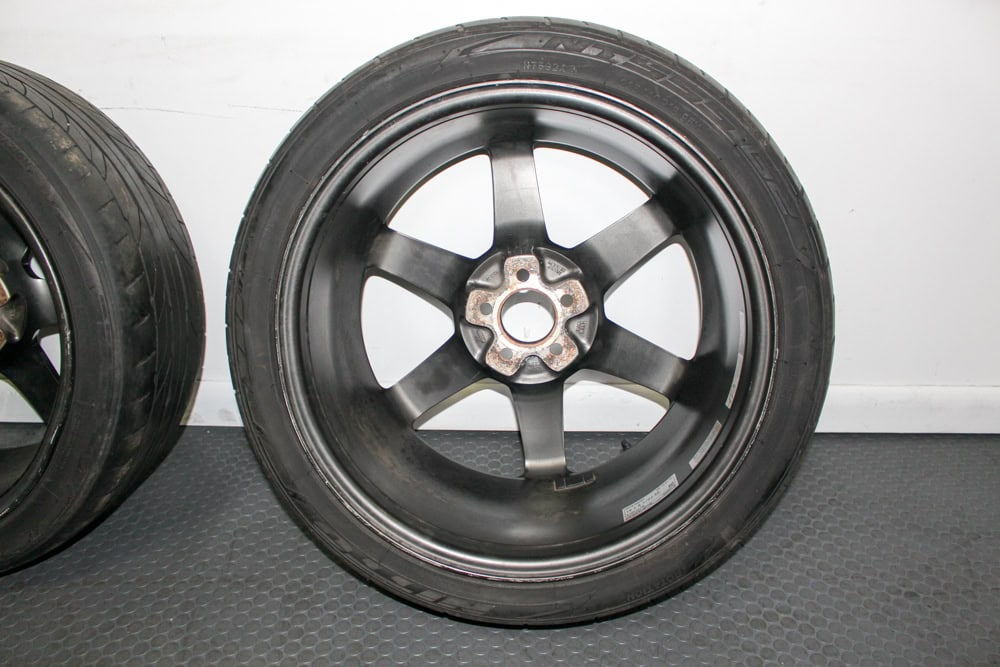 This set of four genuine Volk Racing wheels is ideal for Subaru enthusiasts, track builds, or anyone seeking authentic JDM performance wheels.