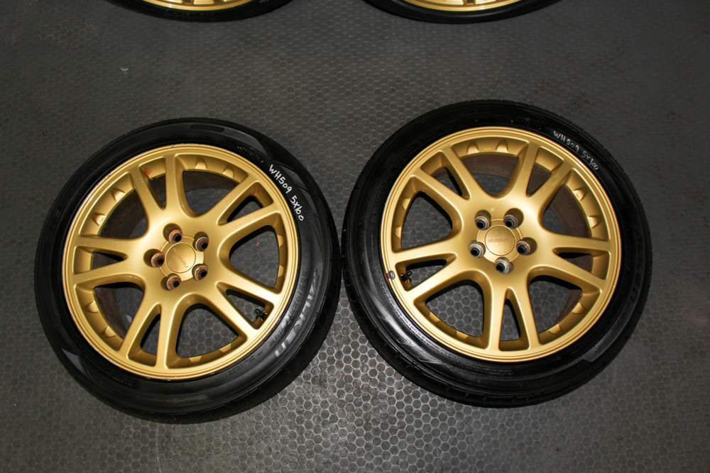 Used Subaru WRX STI Version 7 17×7.5 +53 Enkei Gold Wheels – OEM 10-Spoke Rims with Brembo Caliper Clearance (Set of 4) | J-Spec Auto Sports