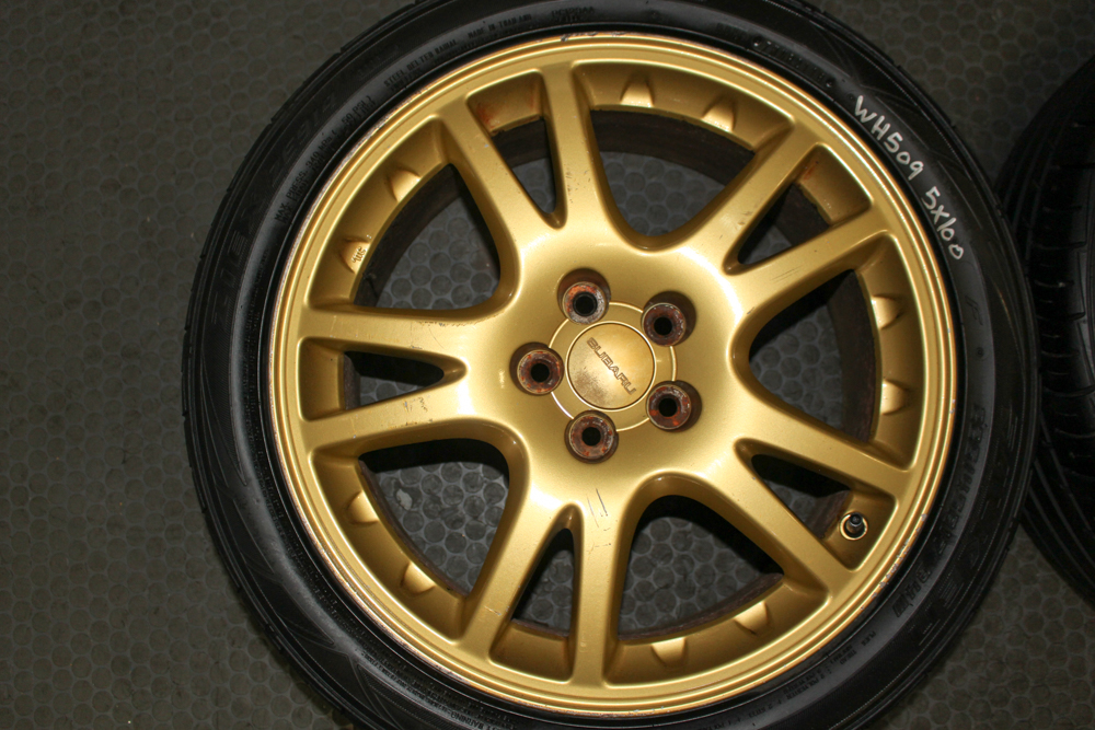 Originally equipped on the Subaru Impreza WRX STI Version 7, these wheels are known for their lightweight design, strong construction, and aggressive rally-inspired styling. The factory gold finish and 10-spoke layout make them one of the most recognizable Subaru STI wheel designs ever produced.