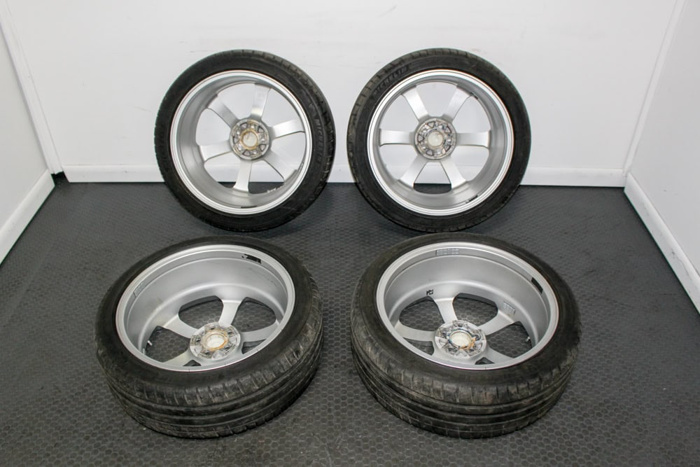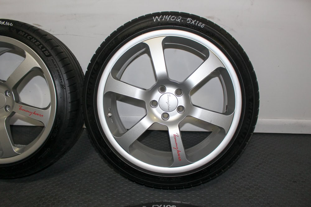 Rare JDM Subaru Legacy Tommy Kaira forged wheels 18×7.5 +52 with 5×100 bolt pattern. Lightweight performance rims set of four available at J-Spec Auto Sports.